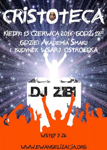 „Cristoteca” jest kierowana do ludzi młodych, ale także do wszystkich chętnych bez względu na wiek, którzy chcieliby wziąć udział w dobrej, chrześcijańskiej imprezie. „Cristoteca” odbędzie się w najbliższą środę, o godz. 19.00, w lokalu „Akademia Smaku”, mieszczącym się przy ul. Korczaka, w budynku WSAP.