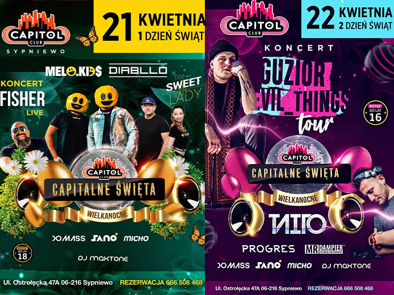 Capitalne Święta Wielkanocne i ZaLany Poniedziałek "Już 21 i 22 kwietnia w święta Wielkanocne ponownie widzimy się w klubie Capitol Sypniewo