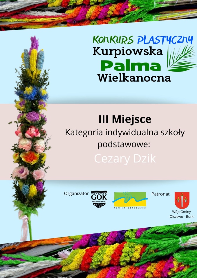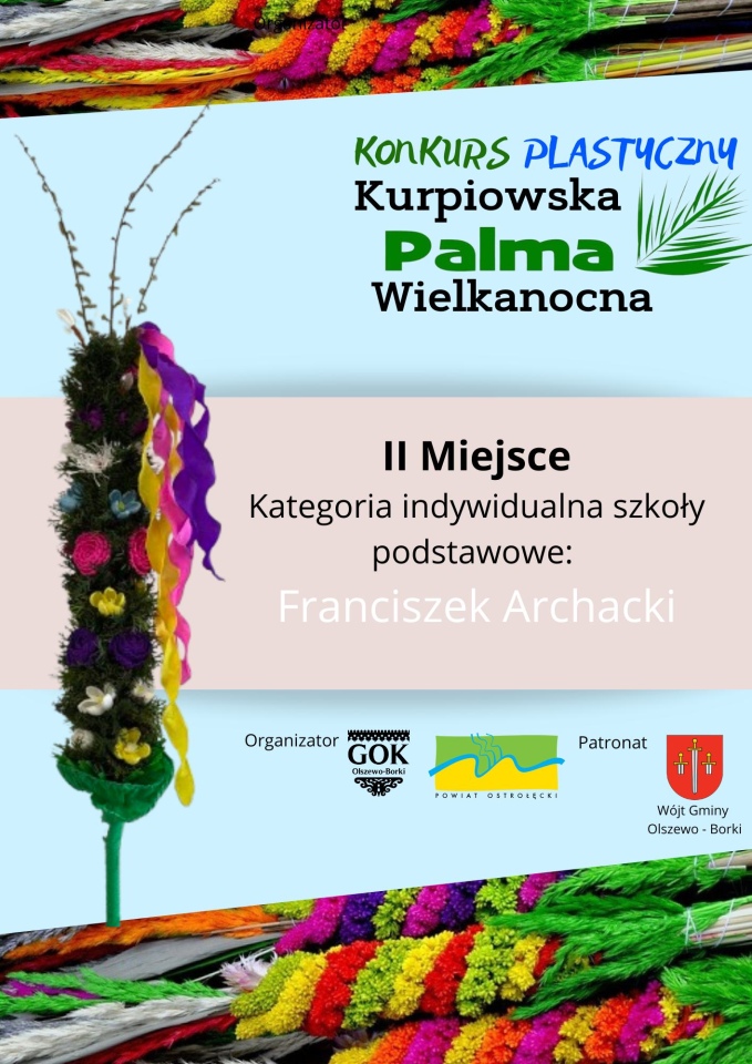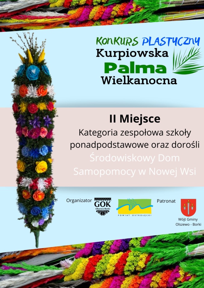 Do tegorocznej edycji zgłoszono aż 55 palm, rywalizujących w sześciu kategoriach. Uroczyste wręczenie nagród odbędzie się 11 kwietnia o godzinie 11:00 w Gminnym Ośrodku Kultury w Olszewie-Borkach.