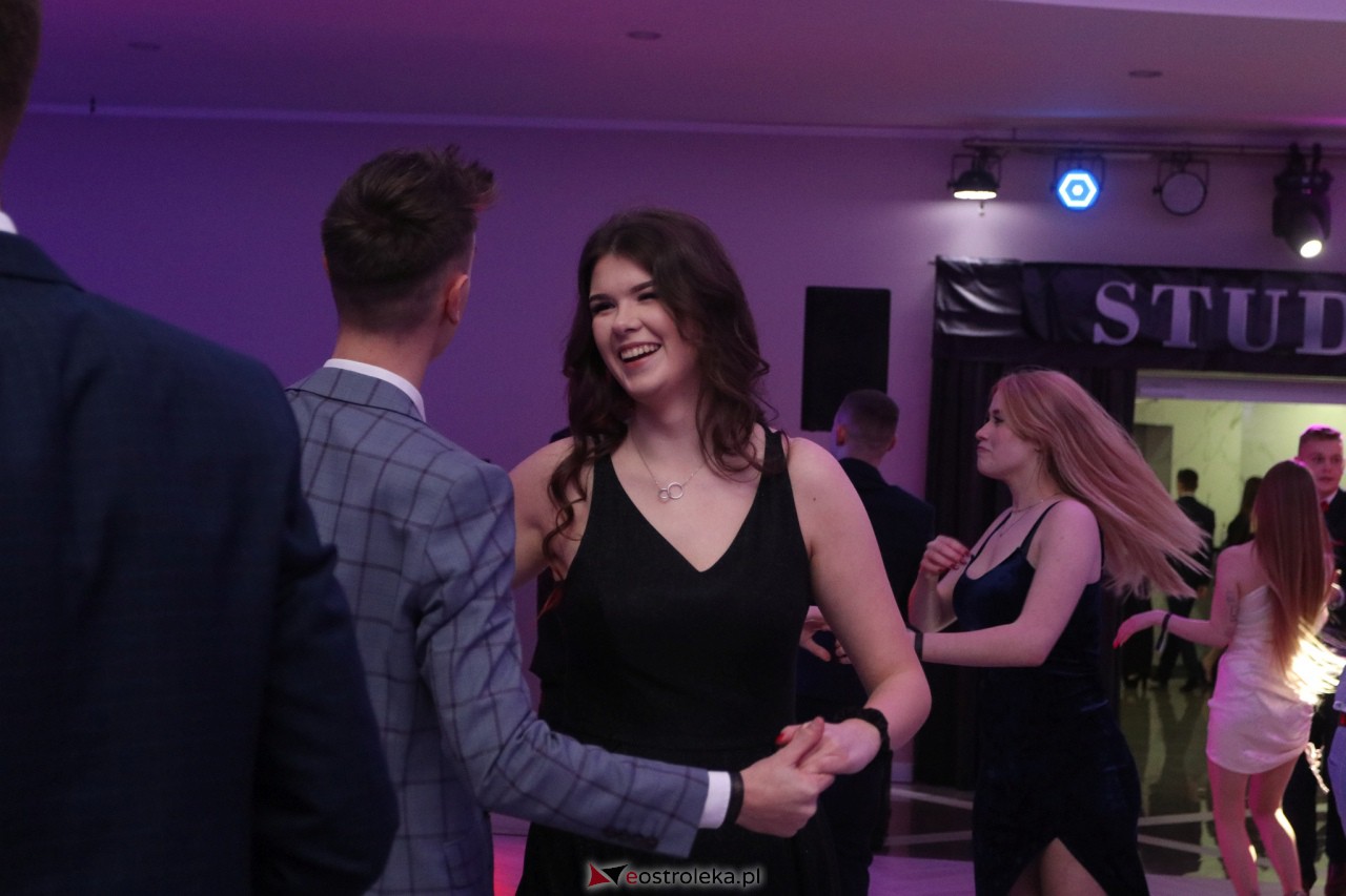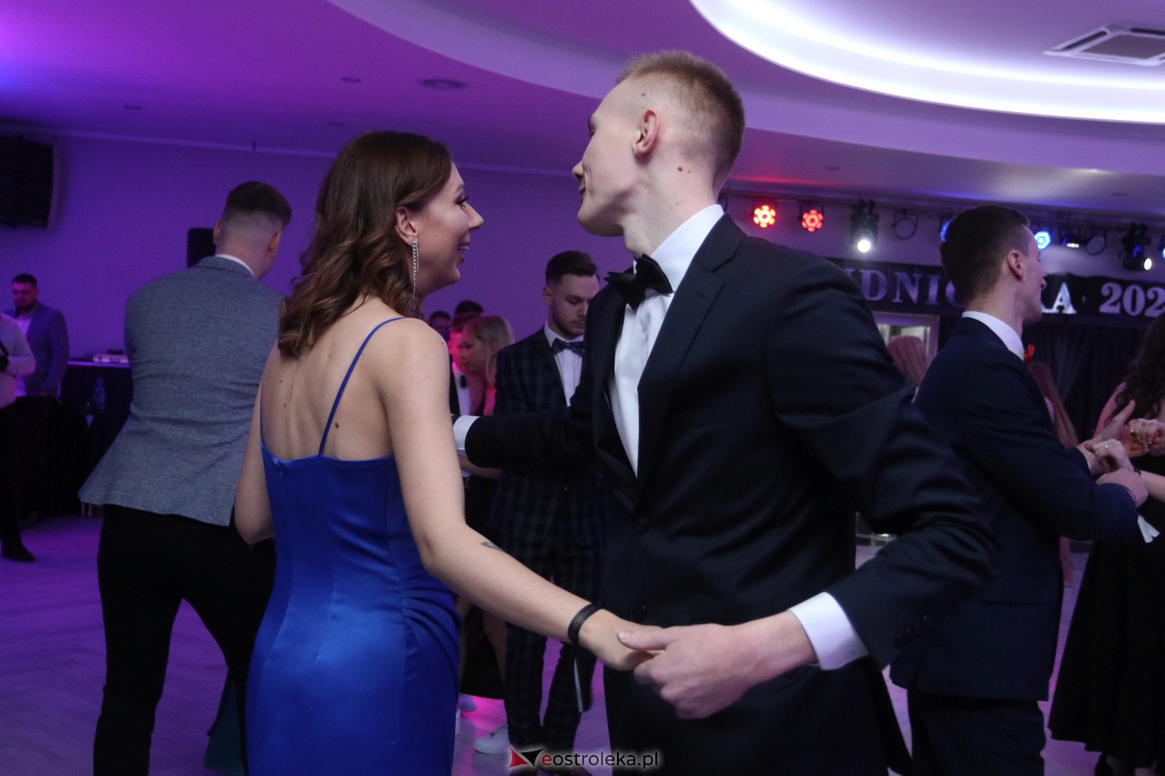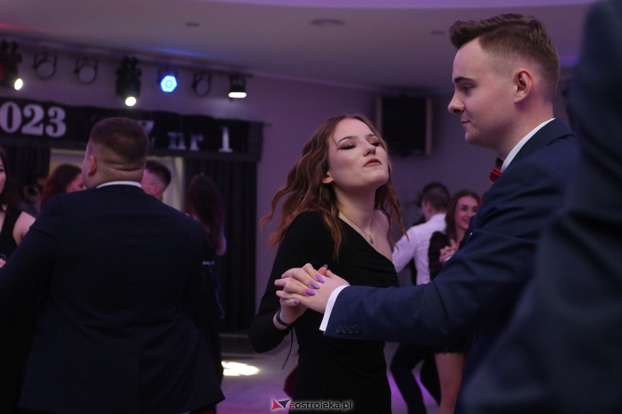 Studniówka 2023 w ZSZ nr 1 w Ostrołęce rozpoczęła się polonezem. Piękny układ choreograficzny został nagrodzony brawami przez wszystkich uczestników wydarzenia.