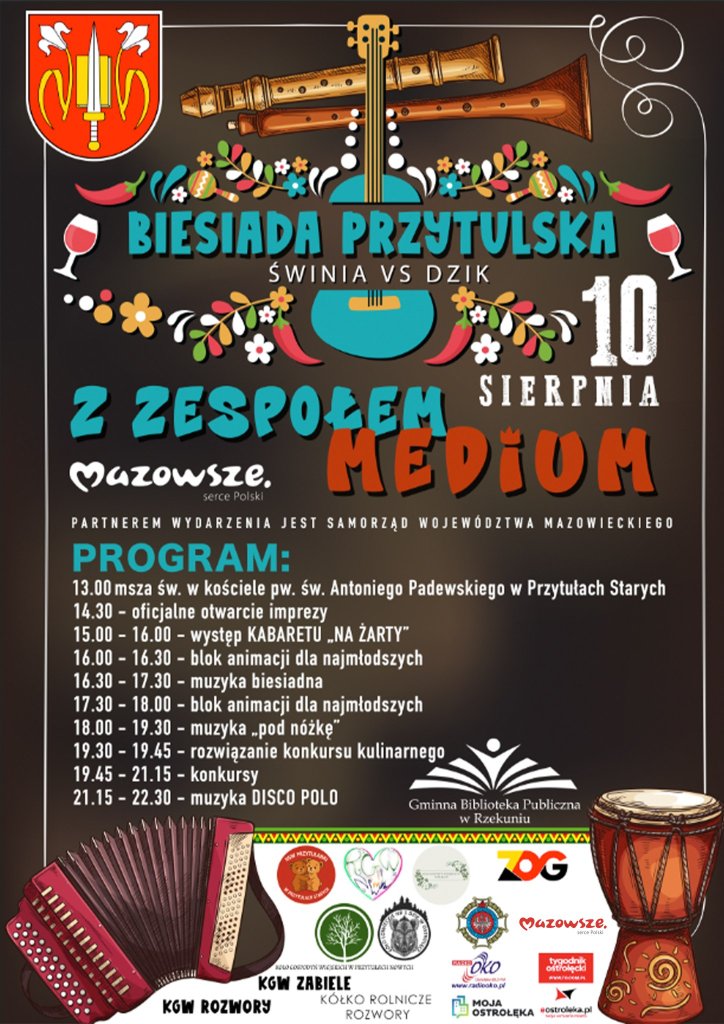 10 sierpnia w Przytulach Starych odbędzie się Biesiada Przytulska: Świnia vs Dzik, której motyw przewodni zapowiada nie lada ucztę dla zmysłów. Partnerem wydarzenia jest Samorząd Województwa Mazowieckiego, a muzyczną gwiazdą wieczoru będzie zespół Medium. W programie nie zabraknie też kabaretu, muzyki biesiadnej i... disco polo.