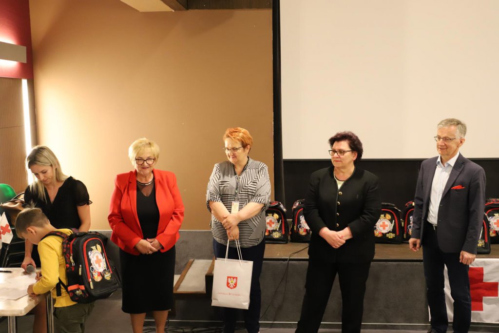 Wyprawki szkolne wręczała Pani Anna Gocłowska - Wiceprezydent Miasta Ostrołęki, Pani Bożena Podbielska - Dyrektor Oddziału Rejonowego PCK w Ostrołęce, Pani Bogumiła Jarka - Dyrektor Wydziału Oświaty Urzędu Miasta Ostrołęki i Pan Tadeusz Wiśniewski - Dyrektor Ostrołęckiego Centrum Kultury. W rolę tłumacza języka ukraińskiego wcieliła się Pani Svitlana Hruhola – pracownik Urzędu Miasta Ostrołęki.