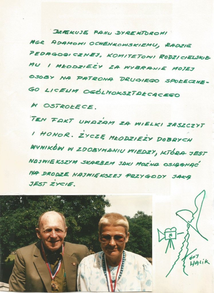 Po tej wizycie podjęto kroki, by nastąpiło uroczyste nadanie imienia szkole. Wydarzenie to miało miejsce 31 maja 1996 roku w sali konferencyjnej Urzędu Wojewódzkiego w Ostrołęce. Od tego czasu rozpoczęła się prężna działalność szkoły, a motto Patrona „Życie jest największą przygodą” zaczęło przyświecać naszym celom i rozjaśniać każdy dzień zapisujący się na kartach historii II Społecznego Liceum Ogólnokształcącego im. Toniego Halika w Ostrołęce.