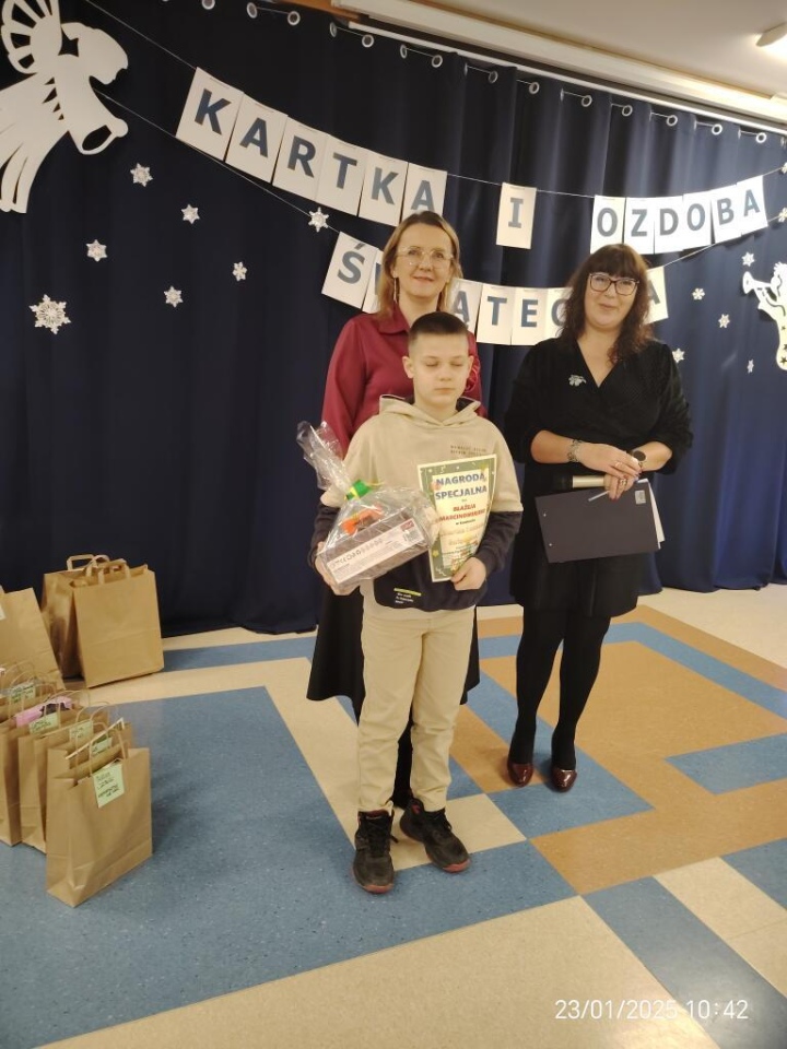 W dniu 23 stycznia 2025 roku w Zespole Szkół Powiatowych w Myszyńcu odbyło się uroczyste podsumowanie oraz wręczenie nagród w konkursie „Kartka i ozdoba bożonarodzeniowa”. To już siódma edycja wydarzenia, które co roku cieszy się ogromnym zainteresowaniem wśród dzieci i młodzieży z powiatu ostrołęckiego.