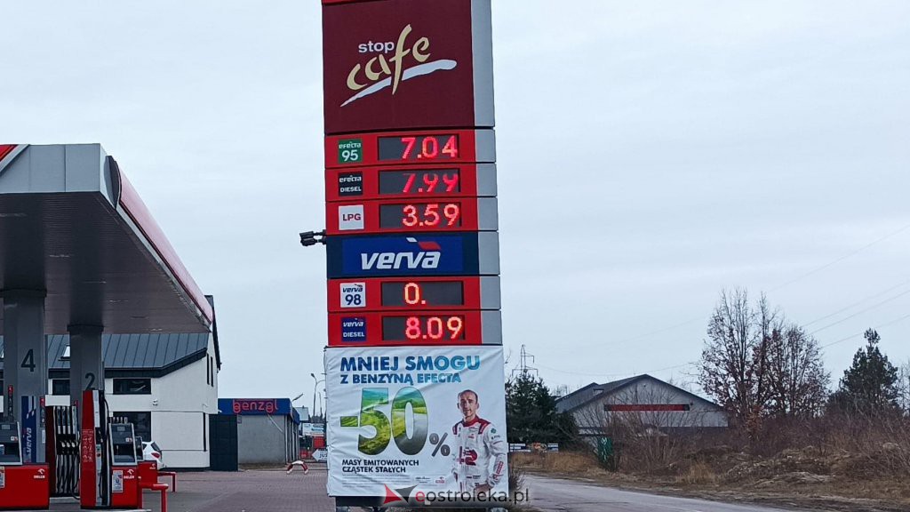 O kolejnych kilkanaście czy w niektórych przypadkach kilkadziesiąt groszy wzrosła też cena benzyny. Za pb95 w Ostrołęce płacimy dziś już ponad 7 złotych. Drożej wychodzi również za LPG – obecnie ceny za litr gazu wahają się od około 3,55 zł do 3,62 zł.