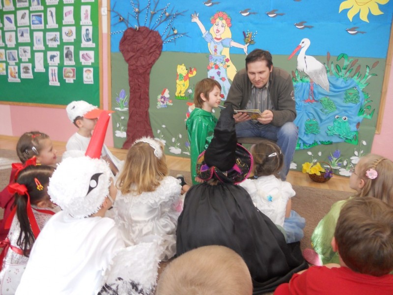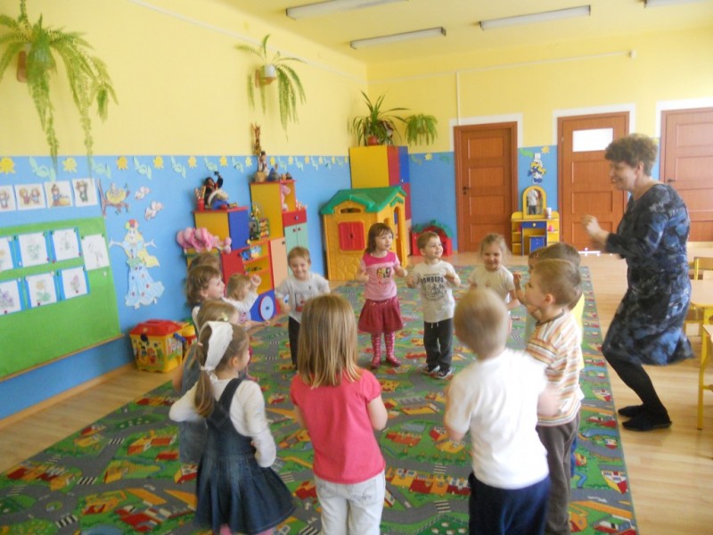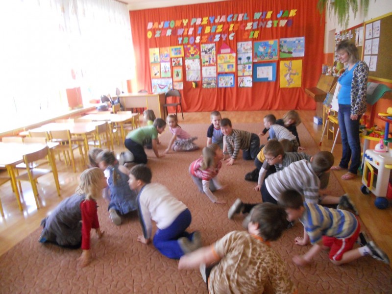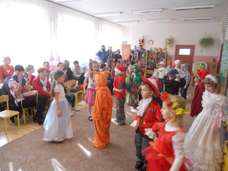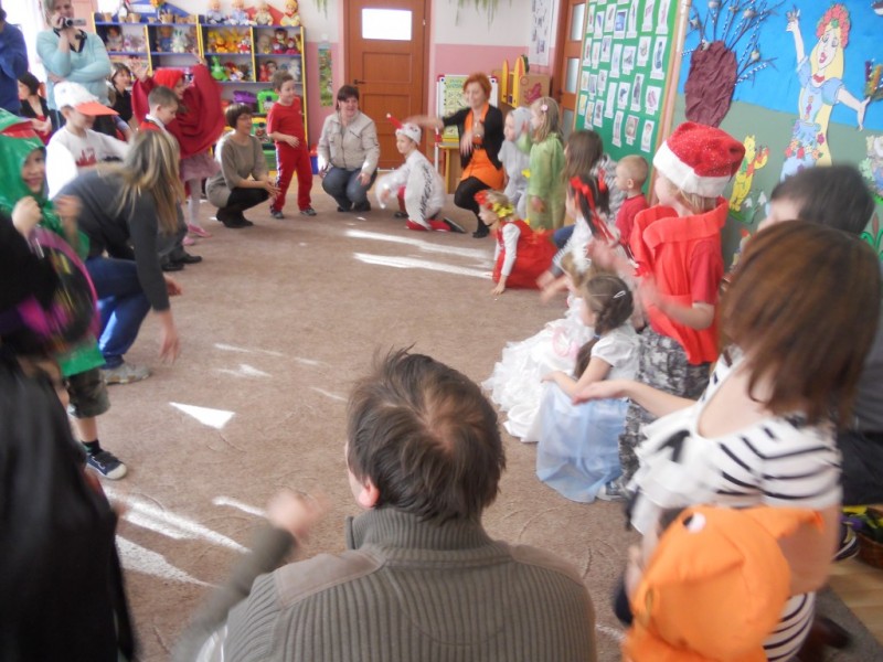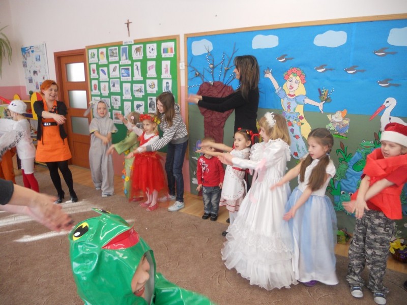 Na gości czekało wiele atrakcji. Obejrzały przedstawienie pt. „Bajkowe powitanie wiosny” w wykonaniu dzieci z grupy V „Żabki”, i aktywnie uczestniczyły w zajęciach i zabawach integracyjnych. Wiosna królowała wszędzie: pachniało baziami, można było usłyszeć dźwięki śpiewających ptaków, rechot żab i klekot bocianów.