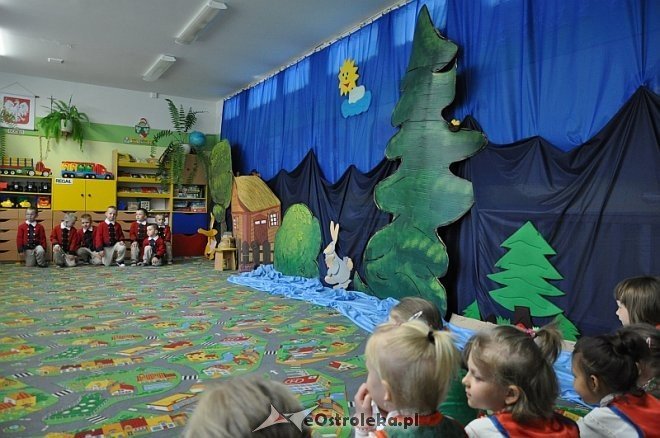 Przedszkolaki u których gościliśmy, całą imprezę uświetnili występami. Na początek, gadka, śpiew, i taniec kurpiowski. Następnie, młodzi aktorzy przedstawili legendę, która opowiada o powstaniu naszego miasta.