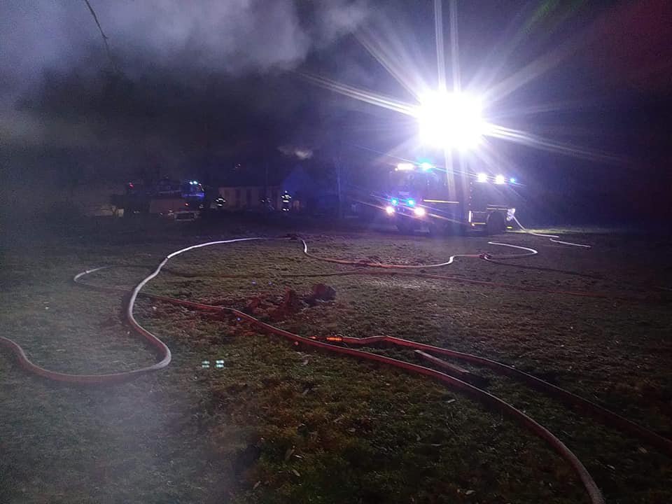 fot. OSP TroszynDo pożaru doszło w środę, 13 lutego około godziny 17:30. Do akcji gaśniczej zadysponowano łącznie 9 jednostek. Gdy na miejsce dojechały pierwsze jednostki strażackie, ogniem w całości objęta była już drewniana stodoła oraz drewniany dach murowanego budynku gospodarczego przylegającego do stodoły.