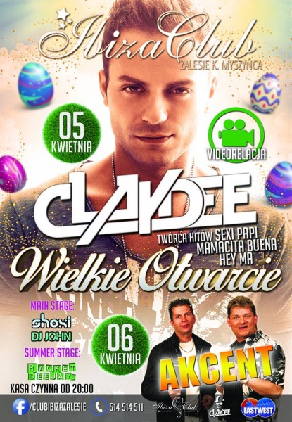Tej nocy wystąpi gość wieczoru podczas pierwszego dnia otwarcia - Claydee znany z mega hitów: Sexi Papi, Mamacita Buena, Hey Ma!