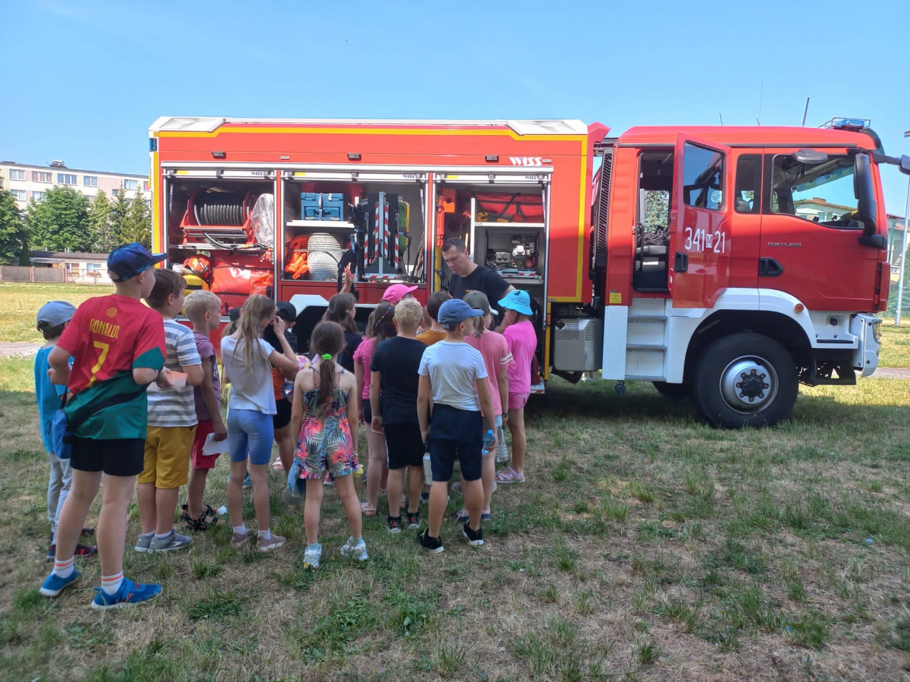 Tereny zielone były miejscem spotkania ze strażakami. Po wysłuchaniu wielu przydatnych i praktycznych rad wzmacniających bezpieczeństwo, strażacy - ku wielkiej uciesze dzieci - postawili kurtynę wodną. Radość była ogromna. Nauka przez zabawę zapada na długo w pamięci.