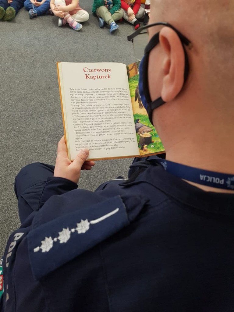 Funkcjonariusze czytali nie tylko te najpopularniejsze utwory ale również bajki związane z szeroko rozumianym bezpieczeństwem. Dzięki temu opierając się na ich treści mundurowi przypomnieli dzieciom podstawowe zasady bezpieczeństwa w tym również zasady bezpieczeństwa w ruchu drogowym.
