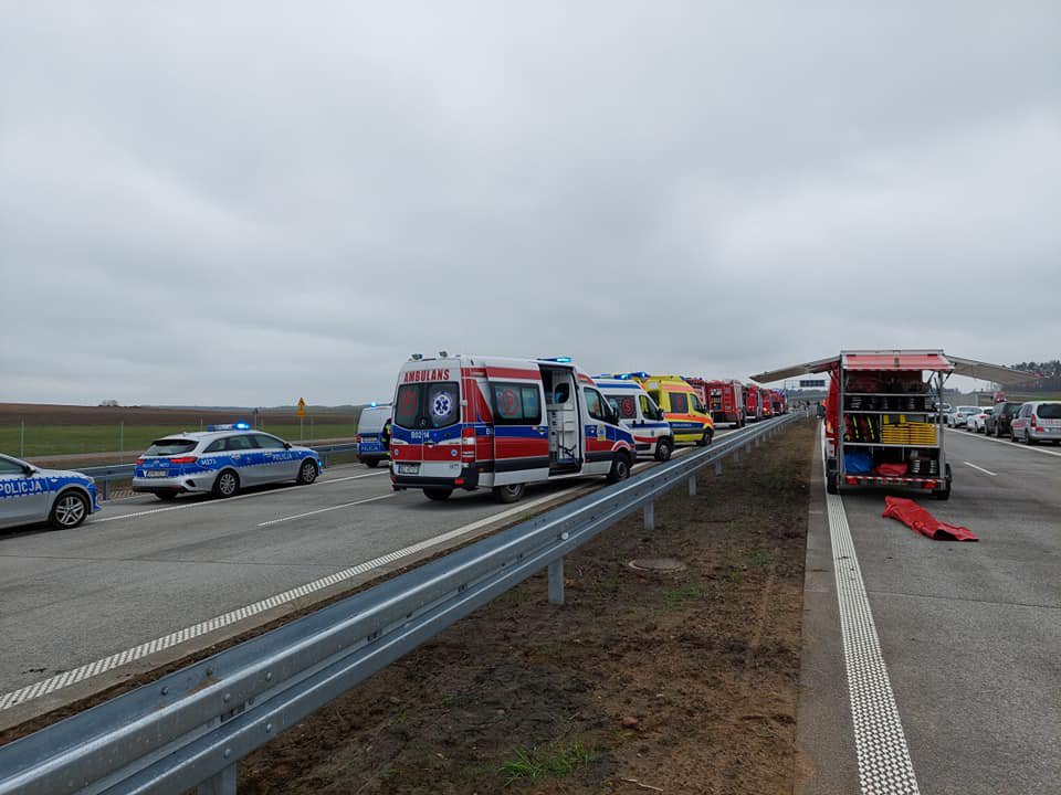 Kilkudziesięciu ratowników, strażaków, funkcjonariuszy policji uczestniczyło w akcji ratunkowej na drodze ekspresowej nr 61, stanowiącej odcinek łomżyńskiej obwodnicy. Były rozbite auta, płonące wraki.