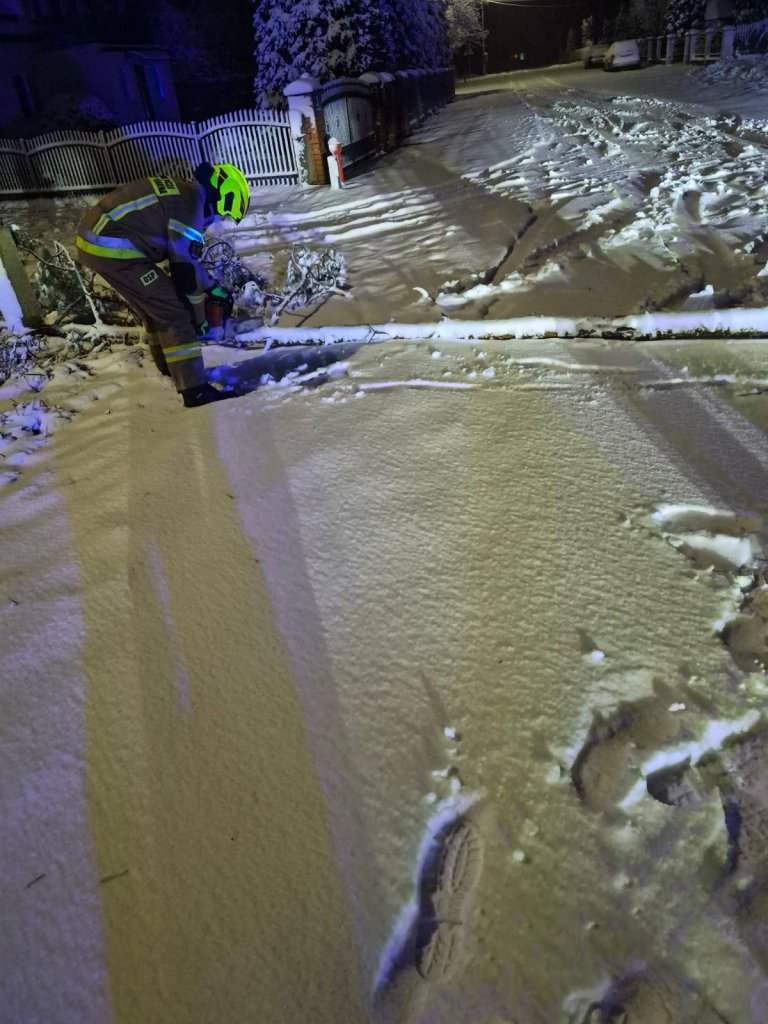 Nagły atak zimy to trudny sprawdzian nie tylko dla drogowców walczących ze śliską nawierzchnią, ale także dla kierowców i służb ratunkowych. Po nocnych, obfitych opadach śniegu, nad ranem nad region nadciągnął front z deszczem. Ciężki, mokry śnieg w połączeniu z opadami deszczu stał się ogromnym obciążeniem dla drzew.