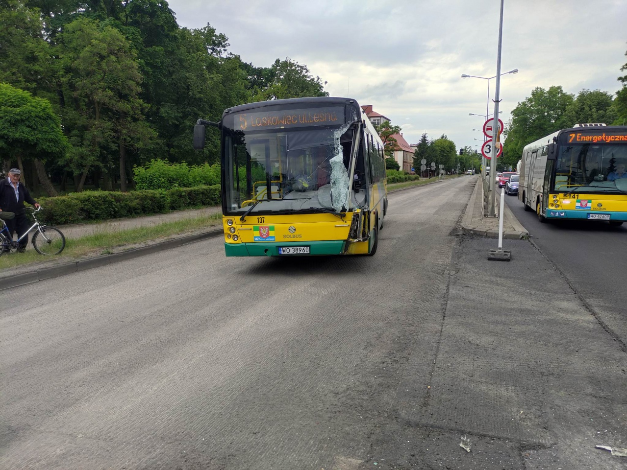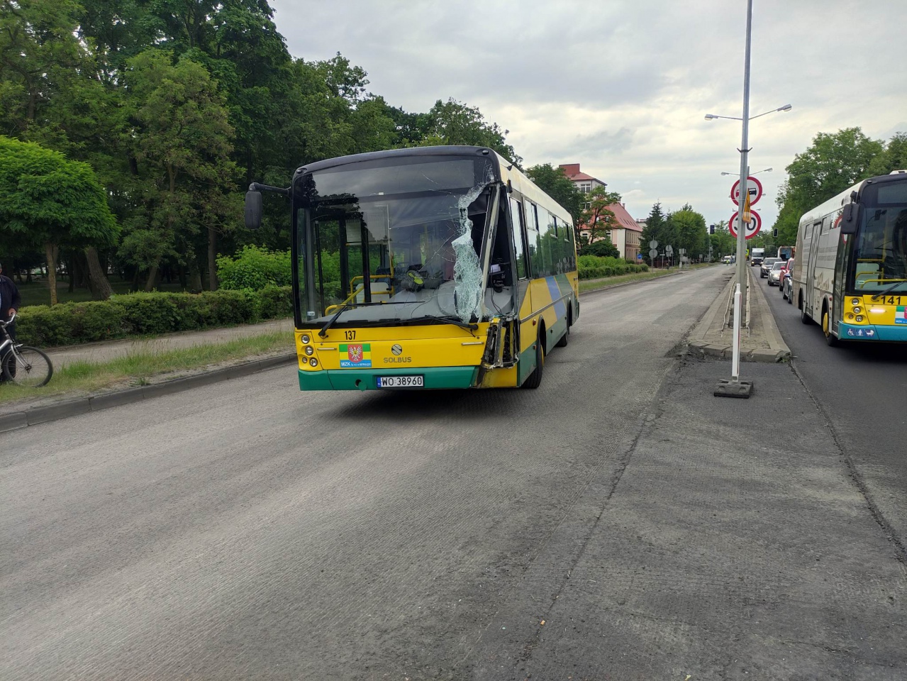 Autobus MZK jadący z pasażerami poruszał się ulicą Traugutta. Według wstępnych ustaleń, kierowca autobusu wjechał na pas, którym nie powinien się poruszać i zderzył się z ciężarówką. Na szczęście, nikomu z pasażerów nic się nie stało, choć autobus został poważnie uszkodzony.