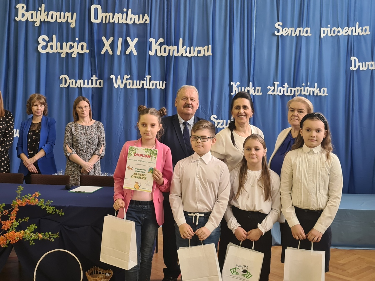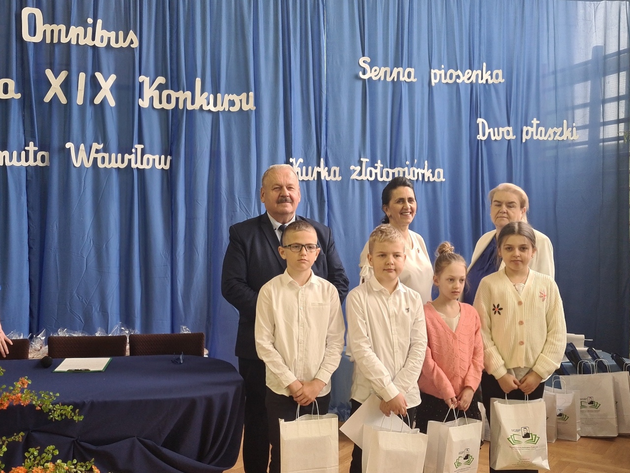 Wszyscy laureaci i uczestnicy otrzymali nagrody rzeczowe i książkowe, ufundowane przez Starostwo Powiatowe w Ostrołęce i Burmistrza Myszyńca. Uczestnikom biorącym udział w konkursie dyplomy i nagrody rzeczowe wręczył radny powiatu ostrołęckiego Kazimierz Ścibek oraz dyrektor Publicznej Szkoły Podstawowej w Wykrocie Mirosława Grzegorczyk.
