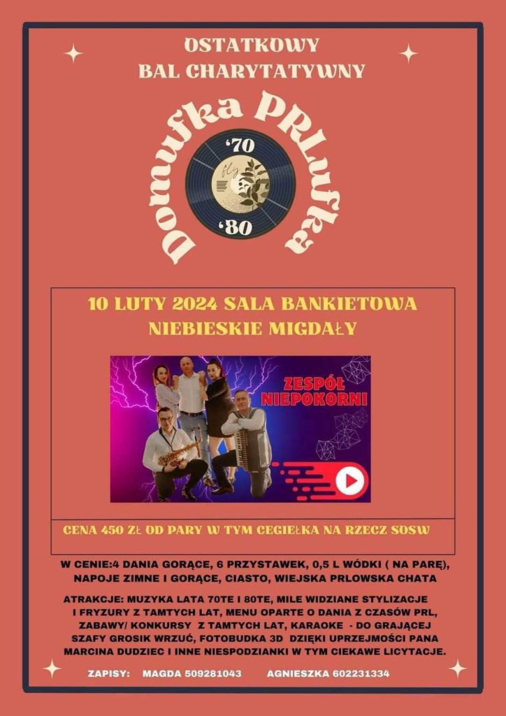 Stowarzyszenie Przyjaciół Dzieci Niepełnosprawnych "Dajmy im radość" przy SOSW w Ostrołęce po raz drugi organizuje bal charytatywny ostatkowy na rzecz uczniów z niepełnosprawnościami. W tym roku to będzie loftowa impreza tematyczna ,,Domufka PRLufka".