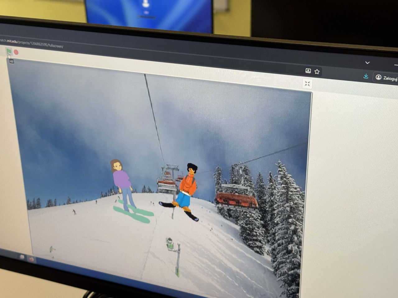 Młodsi uczniowie tworzyli animacje przedstawiające zimowe sytuacje i właściwe zachowania. Starsi programowali edukacyjne mini-gry, w których bohaterowie musieli unikać zagrożeń i podejmować odpowiedzialne decyzje. W wielu projektach uczniowie wykorzystali własne ilustracje, krótkie dialogi oraz nagrane efekty dźwiękowe.