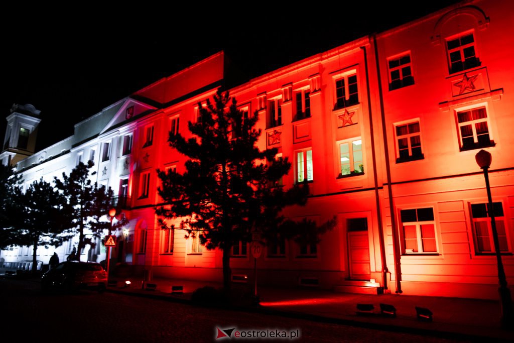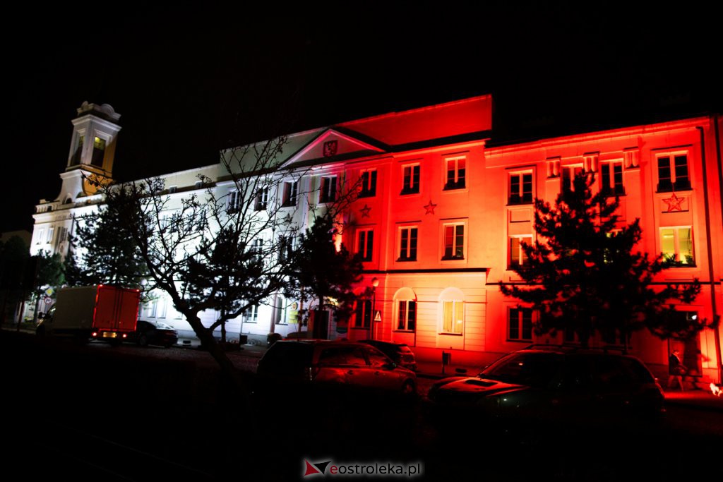 Z okazji Święta Niepodległości budynek Urzędu Miasta oraz Starostwa Powiatowego w Ostrołęce został rozświetlony iluminacją w barwach narodowych.
