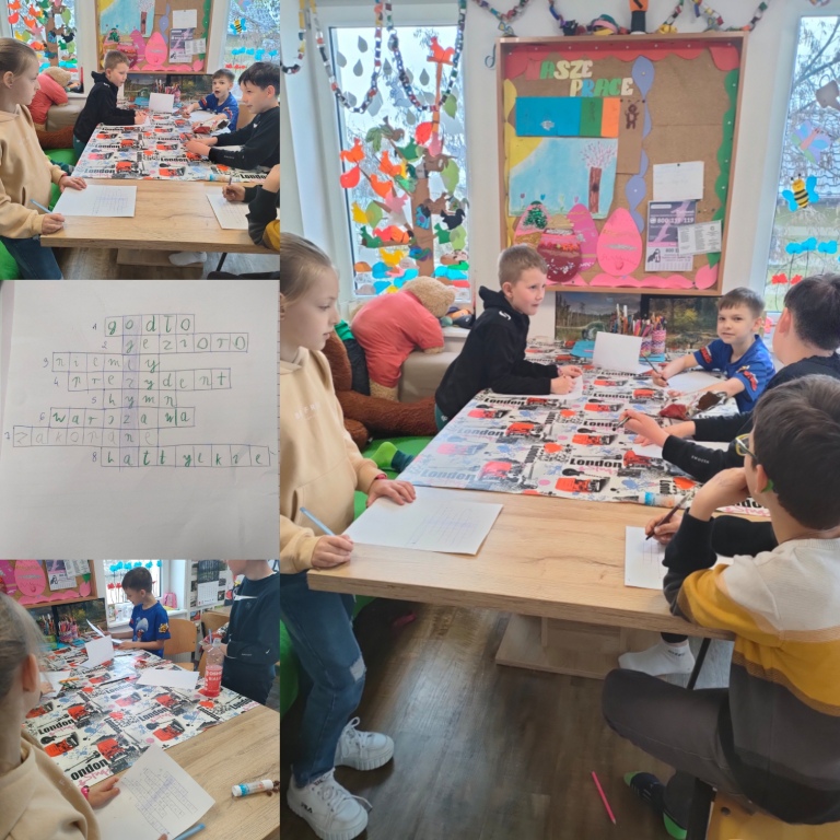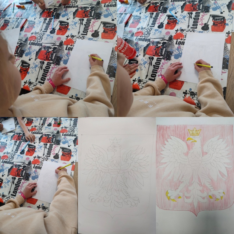 Dzieci uczestniczyły w pogadankach, podczas których dowiedziały się, co oznacza słowo ,,konstytucja’’, jakie było znaczenie tego dokumentu w dziejach naszej państwowości i czytały jej fragmenty. Obejrzały prezentację na temat naszych symboli narodowych oraz ilustracje polskich godeł z różnych okresów historycznych. Podczas zajęć nie mogło zabraknąć ,,Mazurka Dąbrowskiego’’. Dzieci wysłuchały tez pieśń ,,Witaj, majowa jutrzenko’’ .