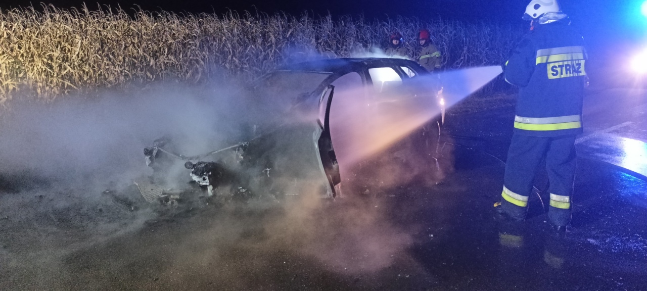 W nocy z czwartku na piątek na lokalnej drodze w powiecie ostrowskim doszło do groźnego zdarzenia. Samochód osobowy marki Volvo stanął w płomieniach. Mimo błyskawicznej reakcji służb, pojazdu nie udało się uratować.