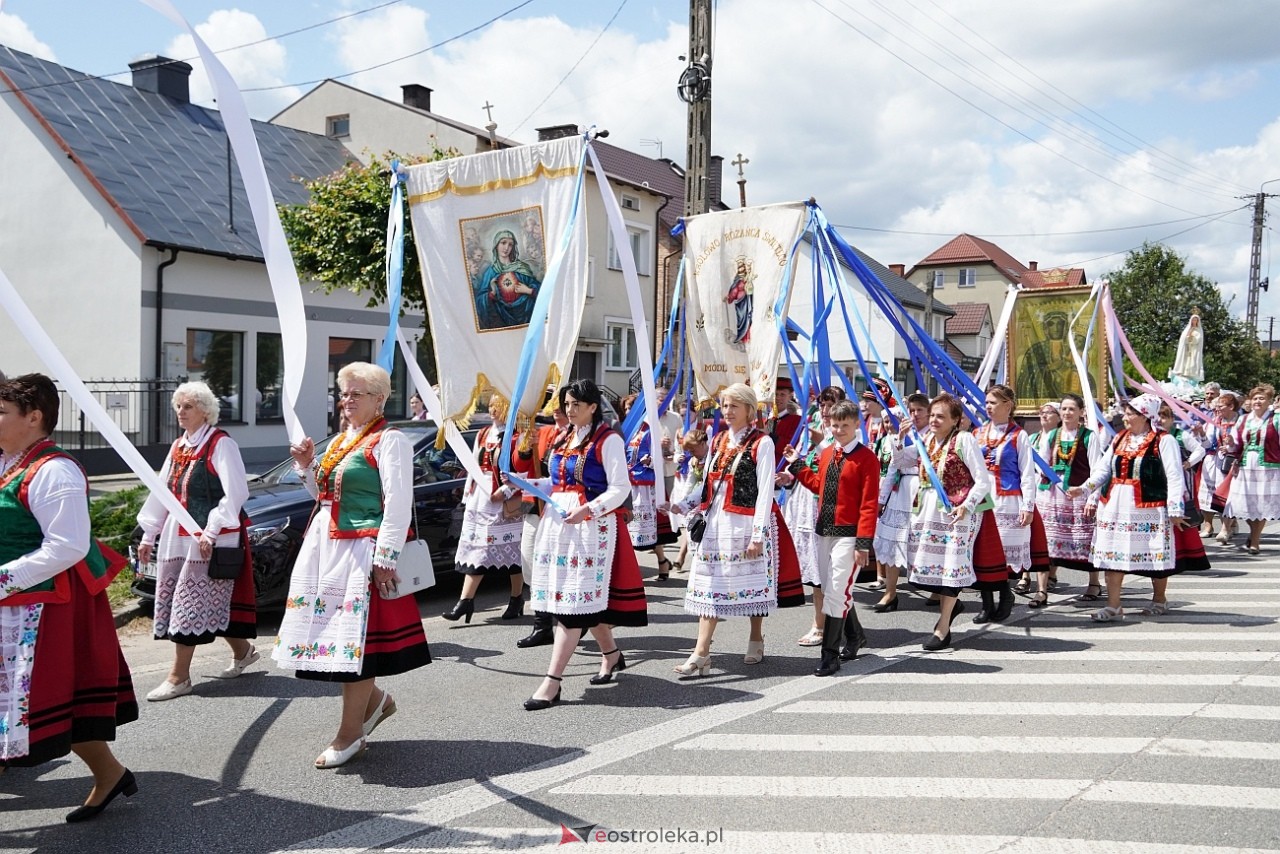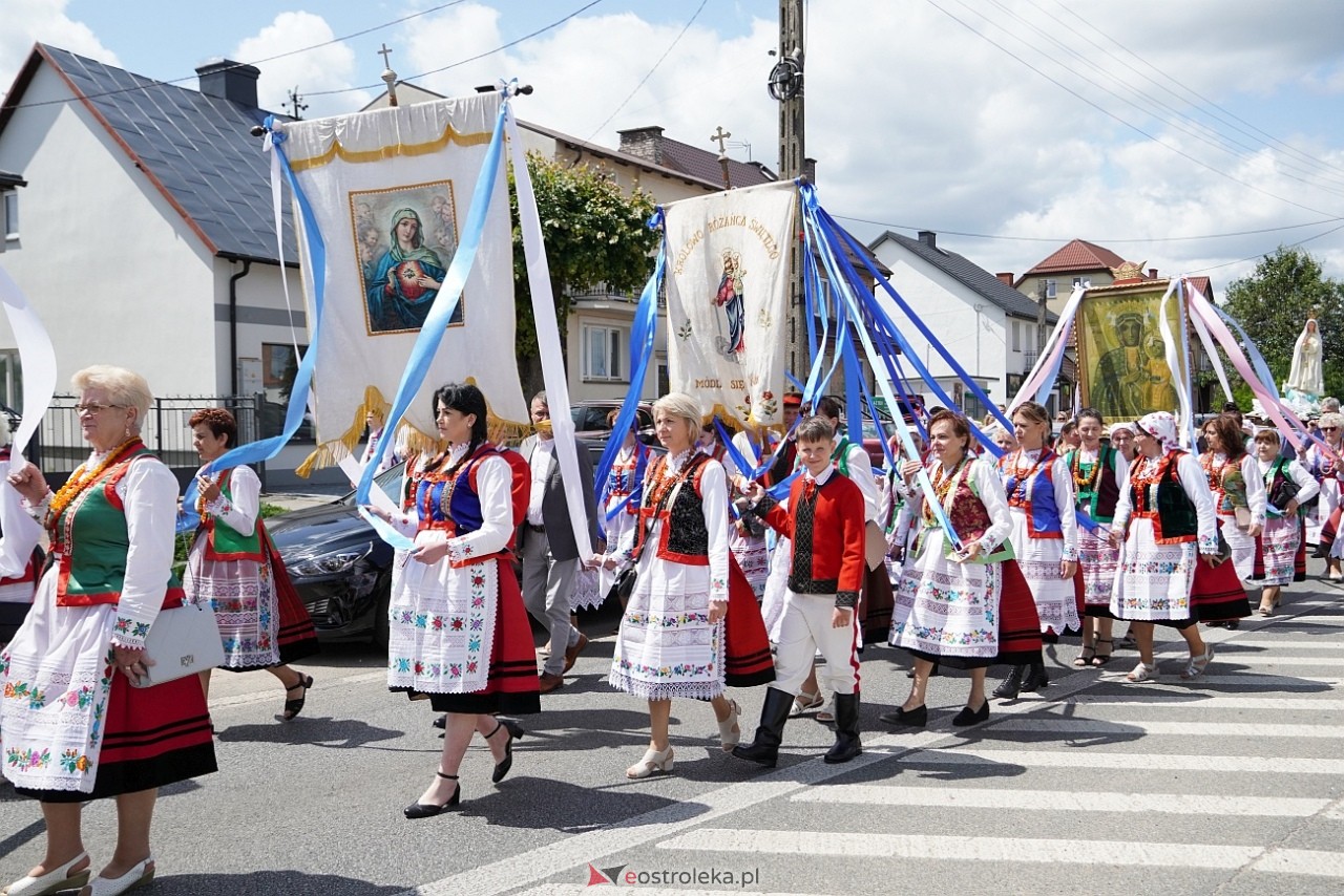 Wierni, w dużej części ubrani kurpiowskie stroje, z dumą nieśli feretrony, chorągwie i obrazy, dodając procesji niezwykłego kolorytu. Szczególnie wyróżniały się dzieci w strojach komunijnych, sypiące kwiaty przed Najświętszym Sakramentem. Orkiestra dęta towarzyszyła procesji, wykonując pieśni religijne, które rozbrzmiewały echem wzdłuż trasy, wprowadzając podniosłą atmosferę.