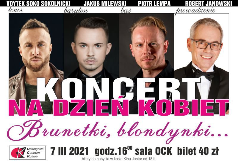 Koncert z okazji Dnia Kobiet pt. "Brunetki, blondynki...", Ostrołęckie Centrum Kultury, 7 marca o godz. 16.00