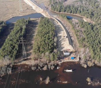 Prace przebiegają zgodnie z zatwierdzonymi harmonogramami robót. Wykonawca prowadzi roboty w dobrze zorganizowany sposób. Trwają prace związane z zabijaniem ścianek zewnętrznych na podporze mostowej zlokalizowanej w nurcie rzeki oraz szalowaniem przyczółków. Podpora nr 4 jest wylana w całości, zaś podpora nr 5 zalana jest betonem do ciosów łożyskowych. Formowane są nasypy na dojazdach do obiektu mostowego.