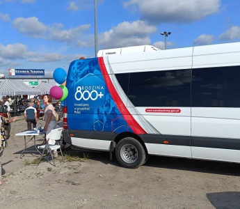Do Ostrołęki zawitali dziś przedstawiciele rządu promujący znowelizowany program 800+. Oklejony w nowe logo bus parkował przed targowiskiem miejskim przy ulicy Zawadzkiego.
