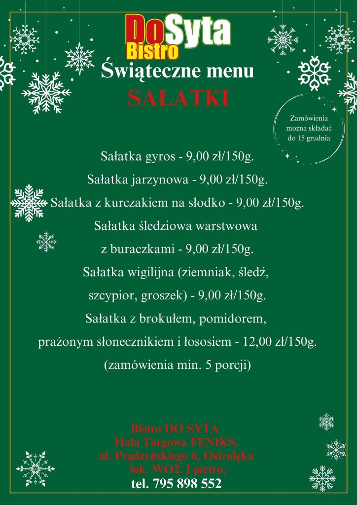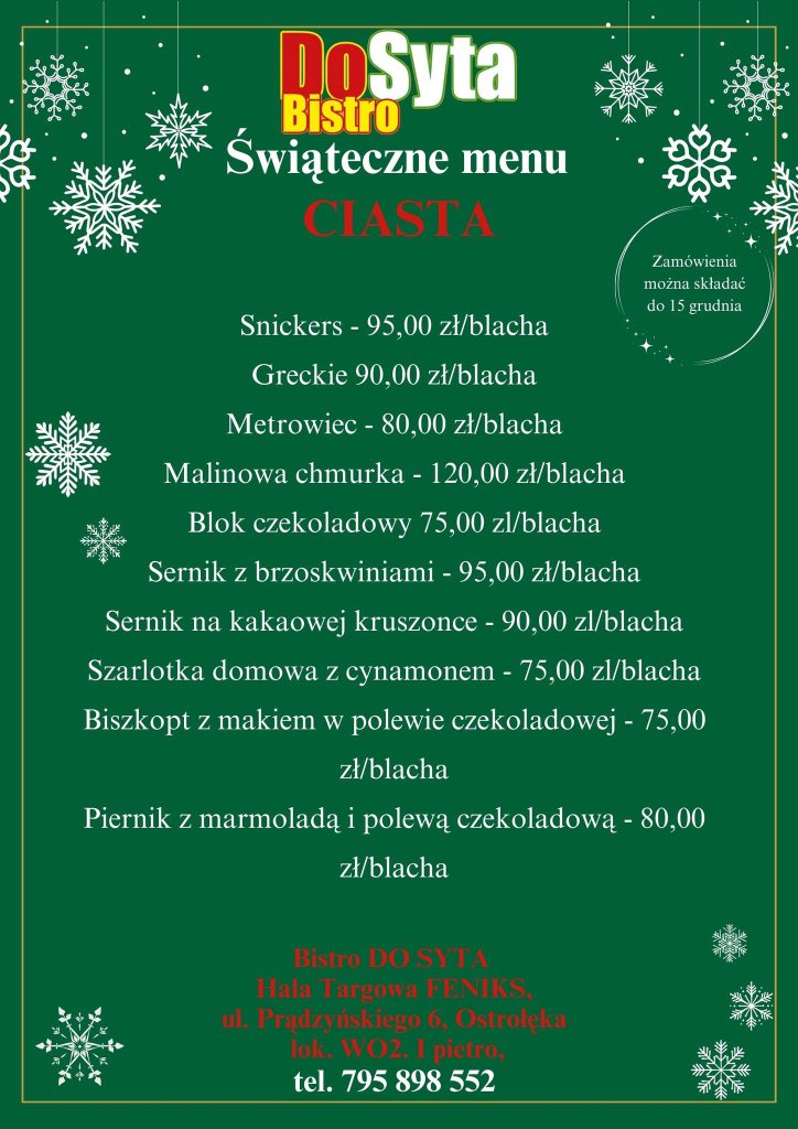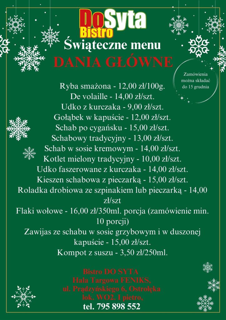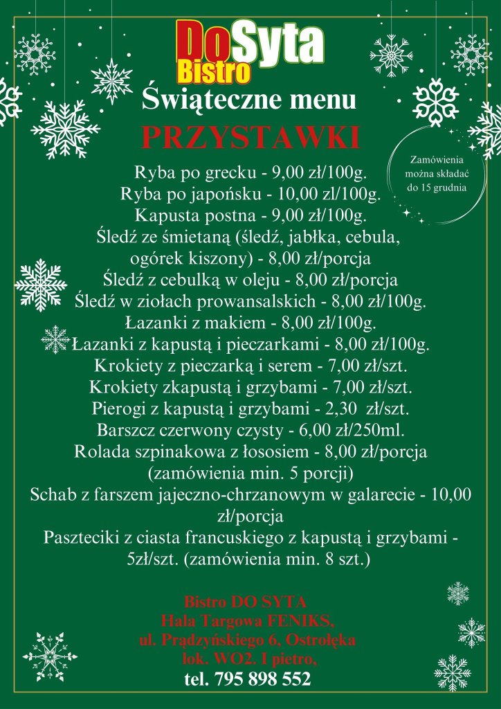 Zamówienia można składać osobiście w lokalu Bistro Do Syta (hala targowa Feniks, ul. Prądzyńskiego 6, Ostrołęka, I piętro) lub tel. 795 898 552 do 15.12.2023 r. do godziny 18:00.