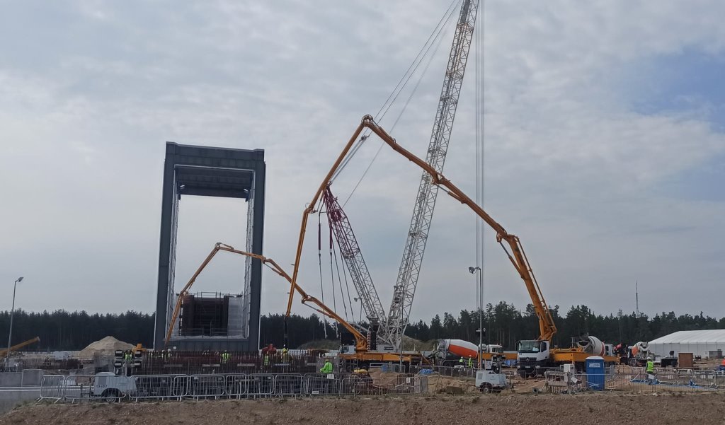 Zakończyły się trwające 30 godzin prace związane z betonowaniem podziemnej części fundamentu, gdzie ostatecznie będzie posadowiony turbozespół – najważniejszy zestaw urządzeń odpowiedzialnych za produkcję energii elektrycznej. Beton na fundament dostarczony został na plac budowy z trzech wytwórni znajdujących się w Ostrołęce i Łomży. Betonowanie odbywało się w sposób ciągły, mieszanka betonowa układana była warstwami. Do podawania mieszanki betonowej wykorzystano dwie pompy do betonu. Łącznie wbudowano 2400 m3 mieszanki betonowej.
