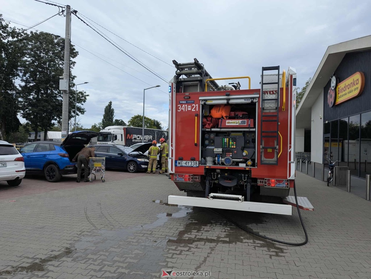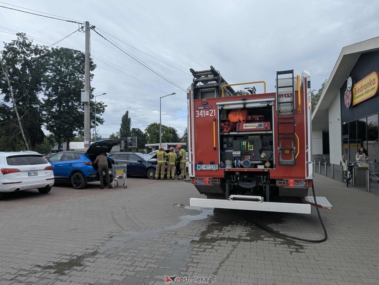 W środowy poranek przed jednym z ostrołęckich marketów doszło do niebezpiecznego zdarzenia, które mogło zakończyć się znacznie poważniej. Na szczęście szybka reakcja świadków oraz strażaków sprawiła, że sytuację udało się opanować w zarodku.