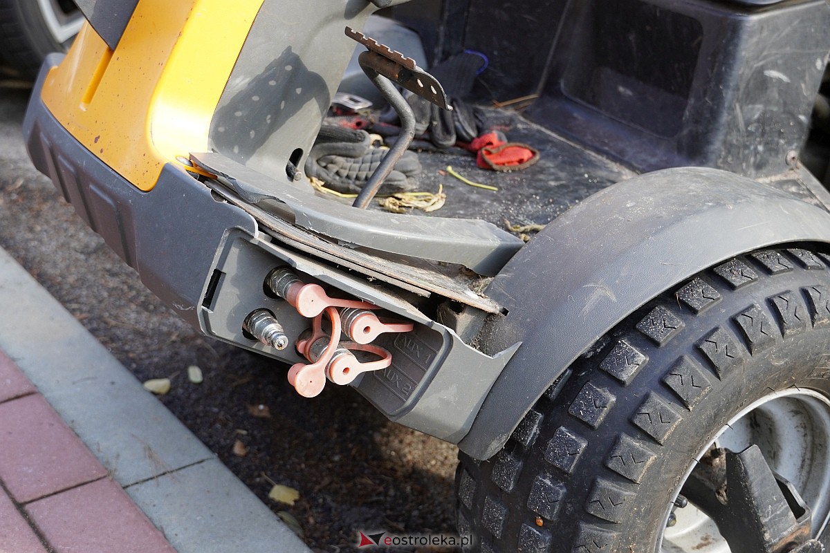 Do zdarzenia doszło w poniedziałek, 30 października w Ostrołęce. Zuchwały złodziej wykorzystując nadarzającą się okazję wskoczył na ciągnik z przyczepą wykorzystywany przez pracowników jednej z ostrołęckich spółdzielni mieszkaniowych do prac porządkowych i uciekł osiedlowymi chodnikami. W rejonie ulicy Kleeberga stracił panowanie nad pojazdem i uderzył w prawidłowo zaparkowaną toyotę. W tym miejscu przejażdżka złodzieja kradzionym ciągnikiem dobiegła końca. Mężczyzna porzucił pojazd i uciekł.
