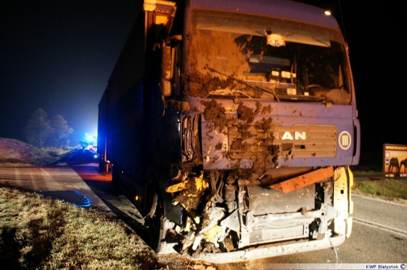 Wczoraj po godzinie 18.00 dyżurny Komendy Powiatowej Policji w Augustowie został poinformowany o wypadku drogowym na drodze krajowej nr 61 w miejscowości Żarnowo. Na miejsce natychmiast pojechali mundurowi. Tam wstępnie ustalili, że jadący w kierunku Augustowa 49-letni kierowca ciężarowego mana uderzył w jadący w tym samym kierunku nieoświetlony ciągnik rolniczy ursus z rozrzutnikiem nawozu. Kierujący ciężarówką próbując uniknąć zderzenia zjechał na przeciwległy pas ruchu. Na skutek tego manewru 43–letni kierowca bmw jadący z przeciwnego kierunku w celu uniknięcia czołowego zderzenia z manem zjechał do przydrożnego rowu. W wyniku wypadku kierujący osobówką z obrażeniami został przewieziony do szpitala. Augustowscy policjanci zatrzymali prawo jazdy nieodpowiedzialnemu kierowcy ciągnika. 53-latek za swoje postępowanie odpowie teraz przed sadem.