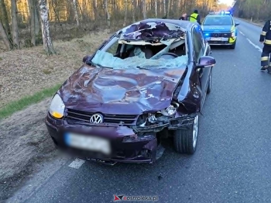 Do wypadku doszło w środę, 29 kwietnia, tuż przed godziną 6:00. Na trasie łączącej Ostrów Mazowiecką z Różanem, w okolicach miejscowości Czarnowo, pod koła nadjeżdżającego auta nagle wtargnęło dzikie zwierzę. Kierowca nie miał szans na uniknięcie kolizji.