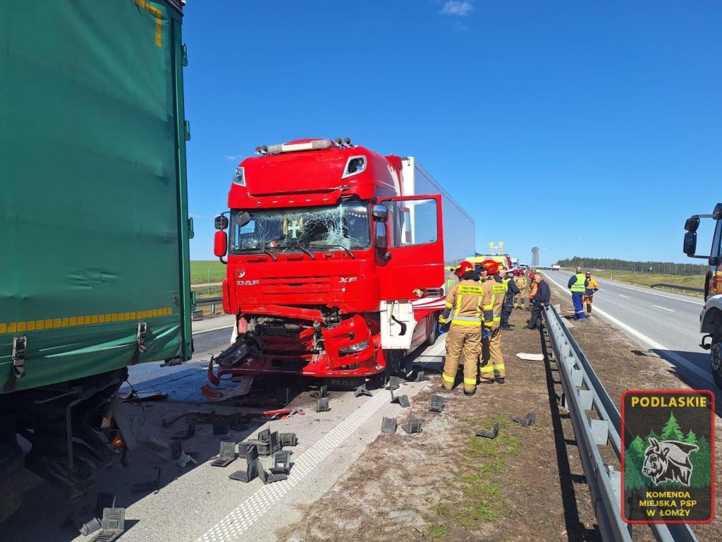 Kierowcy podróżujący drogą ekspresową S61 muszą uzbroić się w ogromną cierpliwość. Od rana trasa łącząca Łomżę z Ostrowią Mazowiecką jest areną groźnych zdarzeń. Najpierw nocny wypadek i pożar, a teraz zderzenie dwóch ciężarówek w rejonie miejscowości Dłużniewo spowodowały potężne utrudnienia w ruchu.