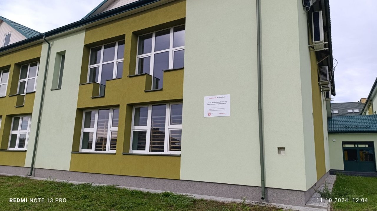 Modernizacja boiska sportowego przy Szkole Podstawowej w Czerwinie polegało na usprawnieniu systemu nawadniania, wykonaniu nowej murawy, montażu piłkochwytów i nowych bramek piłkarskich.