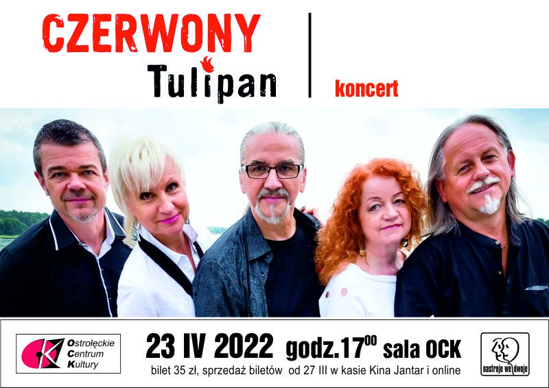 Legenda „piosenki uczucia” – zespół Czerwony Tulipan ponownie wystąpi przed ostrołęcką publicznością. Istniejąca od 1985 roku grupa zagra w ramach programu „Nastroje we Dwoje” realizowanego przez Ostrołęckie Centrum Kultury.