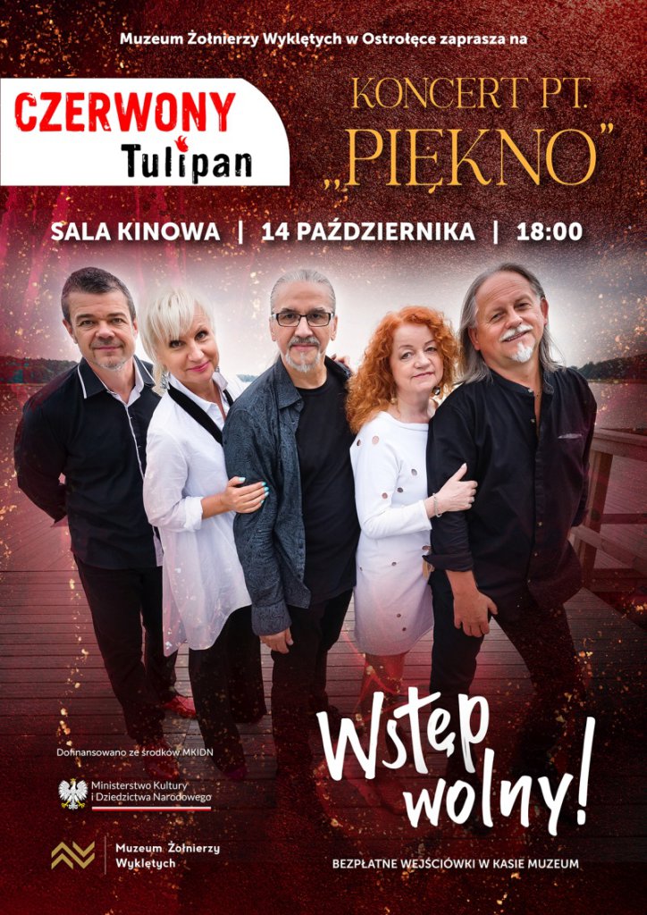 W Muzeum Żołnierzy Wyklętych w Ostrołęce wystąpi zespół Czerwony Tulipan z koncertem pt. „Piękno”. Wstęp po odebraniu bezpłatnego biletu.