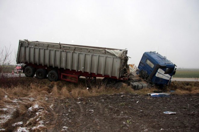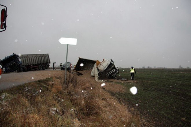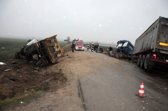 57 letni mieszkaniec powiatu ciechanowskiego kierując samochodem ciężarowym TIR m-ki Volvo wraz z naczepą z nieustalonych przyczyn wjechał na skrzyżowanie wymuszając pierwszeństwo przejazdu kierującemu Scanią 24 letniemu mieszkańcowi Przasnysza w wyniku czego doszło do zderzenia. Obaj kierowcy doznali obrażeń ciała i karetką pogotowia zostali przewiezieni do szpitala w Przasnyszu.