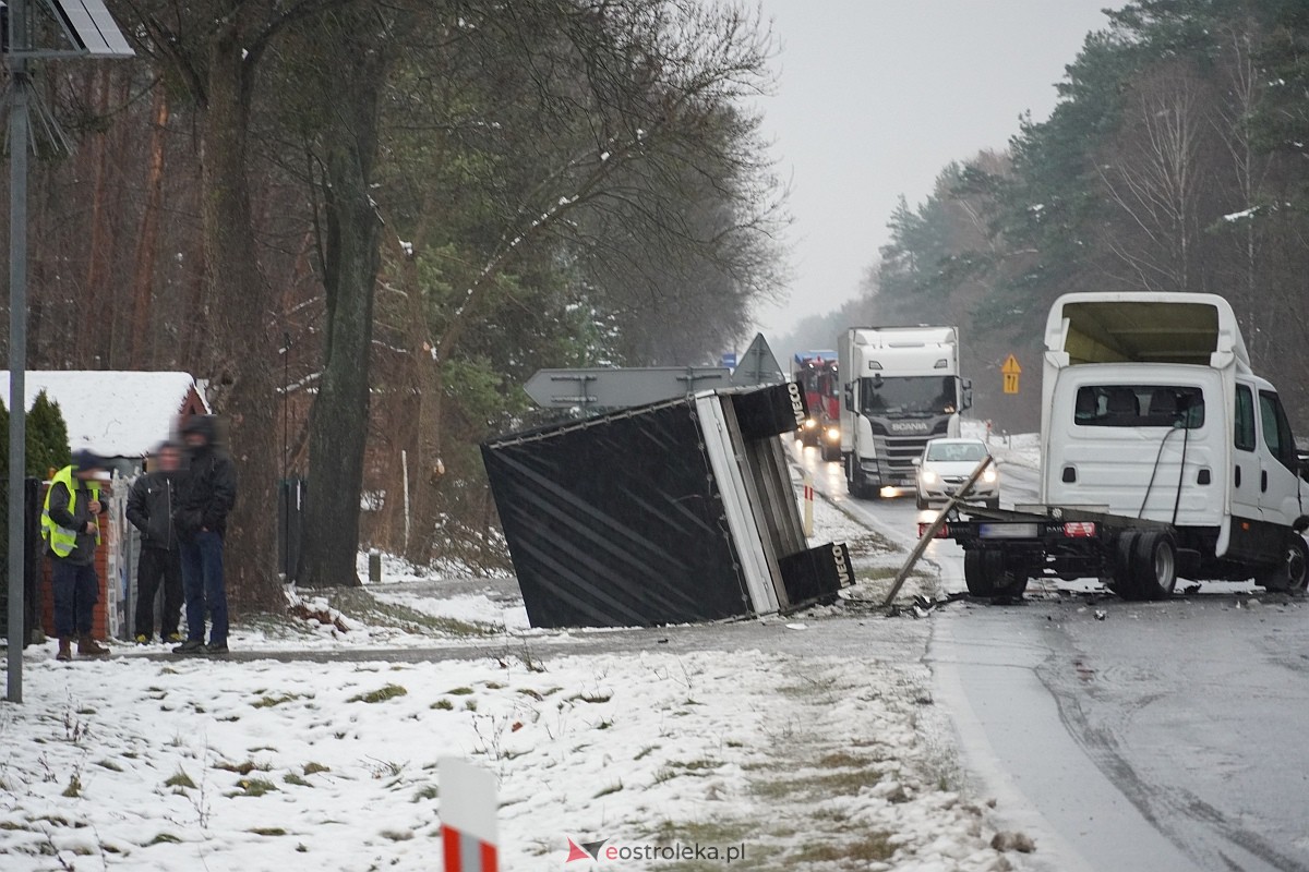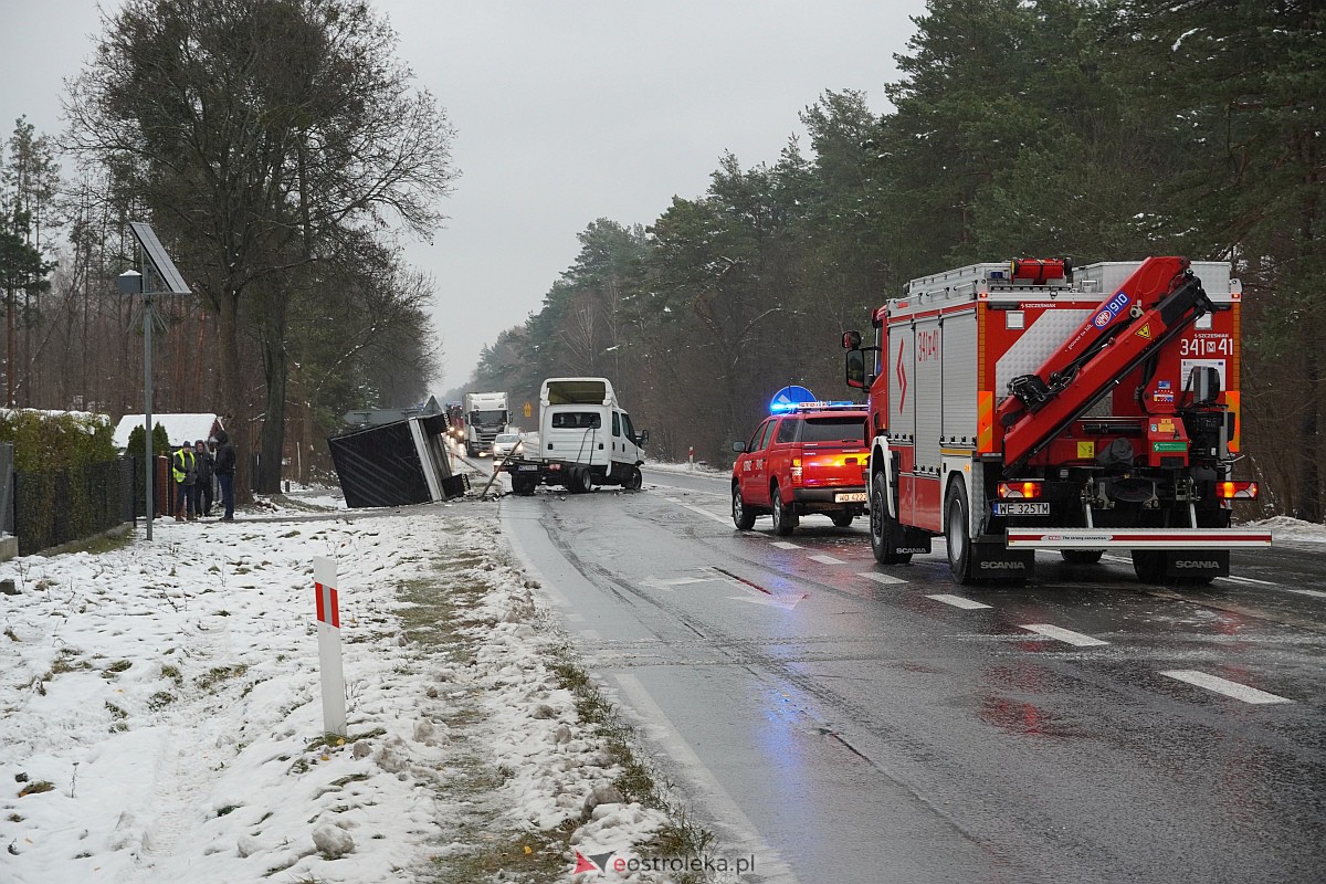Poważny wypadek w Laskowcu. Droga krajowa nr 61 całkowicie zablokowana. W całym regionie są dziś o poranku bardzo trudne warunki. Uważajcie!