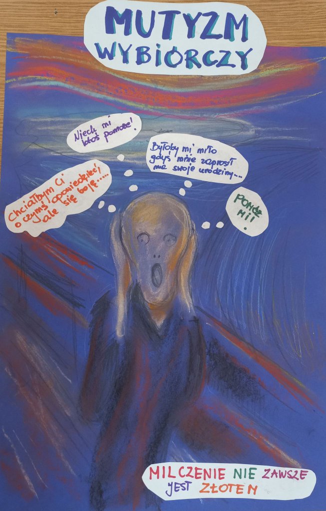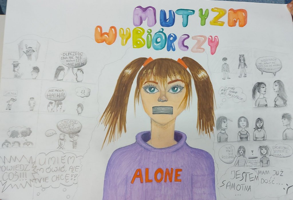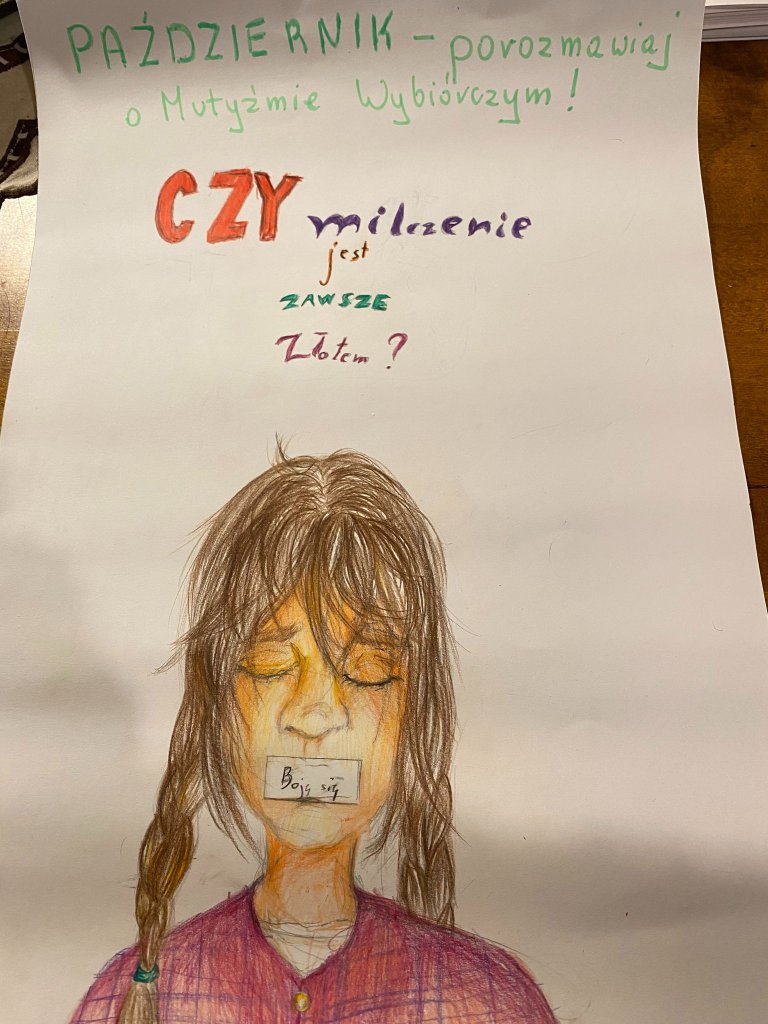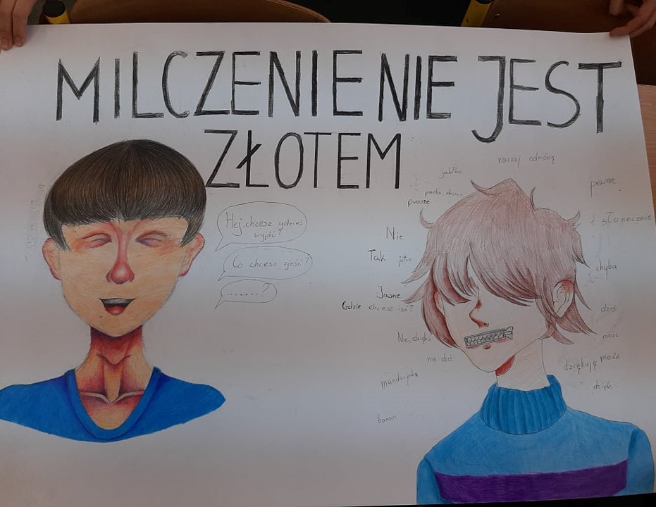 Wszyscy uczestnicy wykazali się ogromnym zaangażowaniem i po zapoznaniu się z częścią teoretyczną przystąpili do wykonania zadań określonych w regulaminie. Powstało wiele pięknych plakatów, które ozdobią szkolne korytarze w październiku z racji miesiąca świadomości mutyzmu wybiórczego. Nadesłano dające do myślenia wyjaśnienia hasła „Milczenie nie zawsze jest złotem”. Wszystkie klasy otrzymały certyfikaty, a nauczyciele koordynujący projekt uzyskali dyplomy uznania Stowarzyszenia „Polskie Towarzystwo Mutyzmu Wybiórczego”