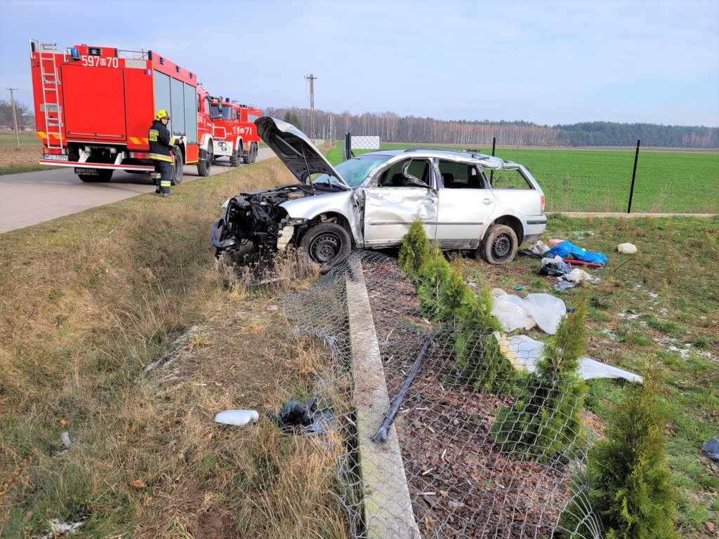 Do groźnego wypadku doszło dziś przed południem w miejscowości Fijałkowo na terenie powiatu przasnyskiego. Kierujący vw passatem jadąc drogą gminną stracił panowanie nad pojazdem, zjechał na pobocze i dachował. Auto obracając się pokonało głęboki rów i zatrzymało się na ogrodzeniu prywatnej posesji.