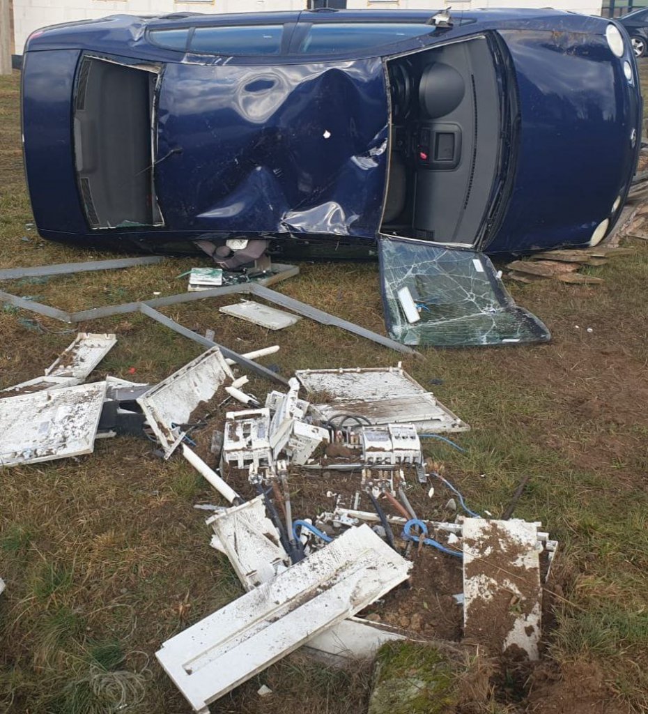 Na szczęście na posesji nie było osób postronnych, kierująca również nie doznała poważnych obrażeń ciała. Jak sama przyznała od obrażeń uratowały ją zapięte pasy bezpieczeństwa, które nie pozwoliły jej wypaść podczas dachowania. 26-latka została ukarana mandatem karnym, była trzeźwa.