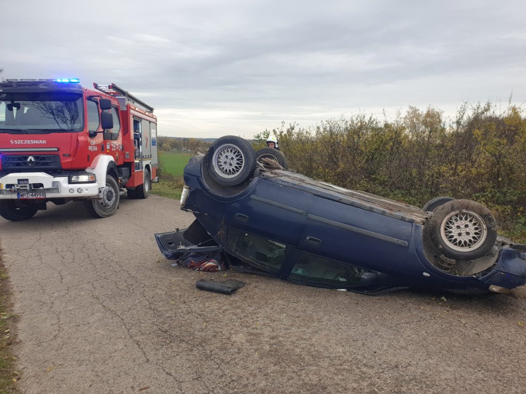 Do wypadku doszło w piątek, 3 listopada około godziny 8:35 na drodze powiatowej w miejscowości Pawłowo Kościelne gm. Czernice Borowe w powiecie przasnyskim. Kierujący osobówką z niewyjaśnionych przyczyn stracił panowanie nad pojazdem i w wyniku poślizgu dachował zatrzymując się na środku jezdni. W wypadku poszkodowane zostały dwie osoby. Z miejsca zdarzenia zostały zabrane do szpitala.