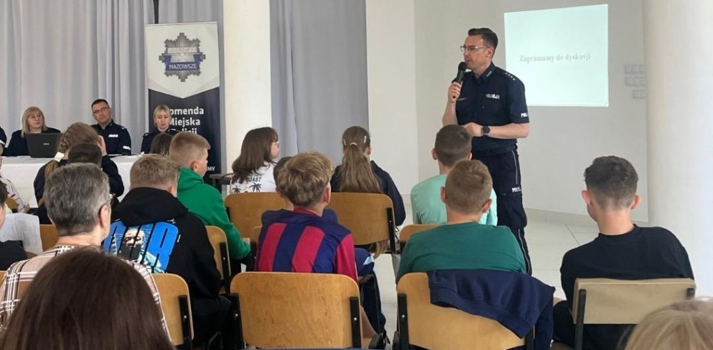 Spotkanie otworzył podinsp. Tomasz Suchecki, który przedstawił strukturę ostrołęckiej jednostki policji, omówił aktualny stan bezpieczeństwa w regionie i podkreślił istotną rolę tego typu spotkań w budowaniu świadomości i przeciwdziałaniu zagrożeniom online. Szczególny apel skierował do młodych ludzi, zwracając uwagę na zasady bezpiecznego korzystania z portali społecznościowych.