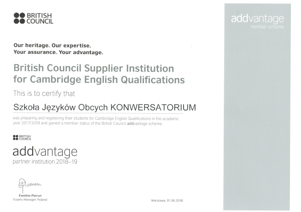 Egzaminy Cambridge English FCE, CAE słuchacze mogą zdawać w siedzibie szkoły, bez potrzeby wyjazdu do dużych miast.