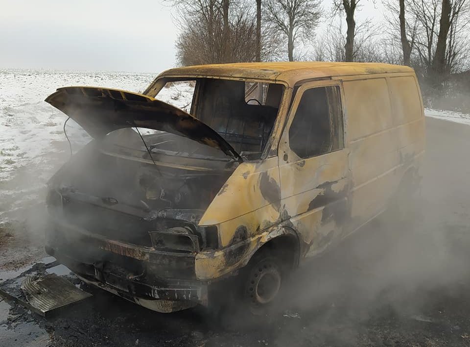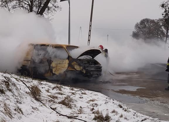 Pożar zgłoszono we wtorek, 28 grudnia kilka minut przed godziną 10:00. Najprawdopodobniej na skutek awarii instalacji elektrycznej w ogniu stanął dostawczy vw. Mimo szybkiej akcji gaśniczej auto spłonęło doszczętnie. Szczęśliwie jednak nikt z podróżujących autem nie doznał obrażeń.