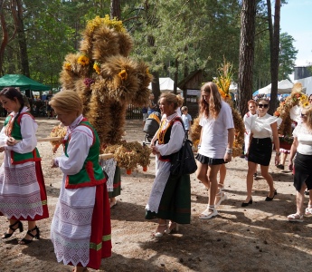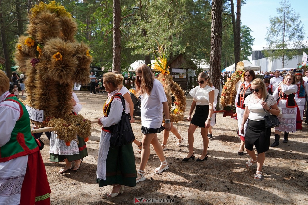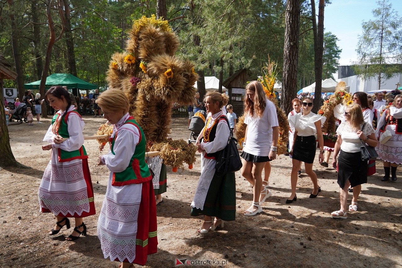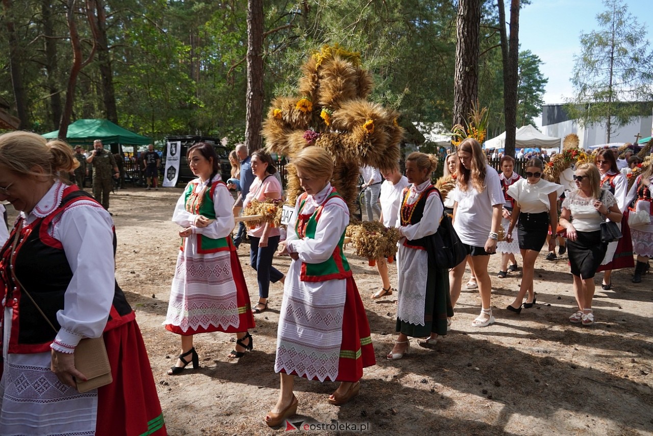 Dożynki rozpoczęła msza święta, po której barwny korowód z wieńcami dożynkowymi prowadzony przez Strażacką Orkiestrę Dętą z Kadzidła przemaszerował do zagrody kurpiowskiej.