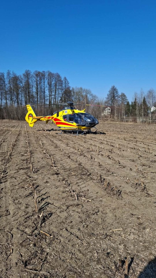 Z uwagi na stan poszkodowanego i konieczność natychmiastowej specjalistycznej pomocy, na miejsce wezwano załogę Lotniczego Pogotowia Ratunkowego. Śmigłowiec przetransportował 36-latka do jednego ze specjalistycznych szpitali w Warszawie.