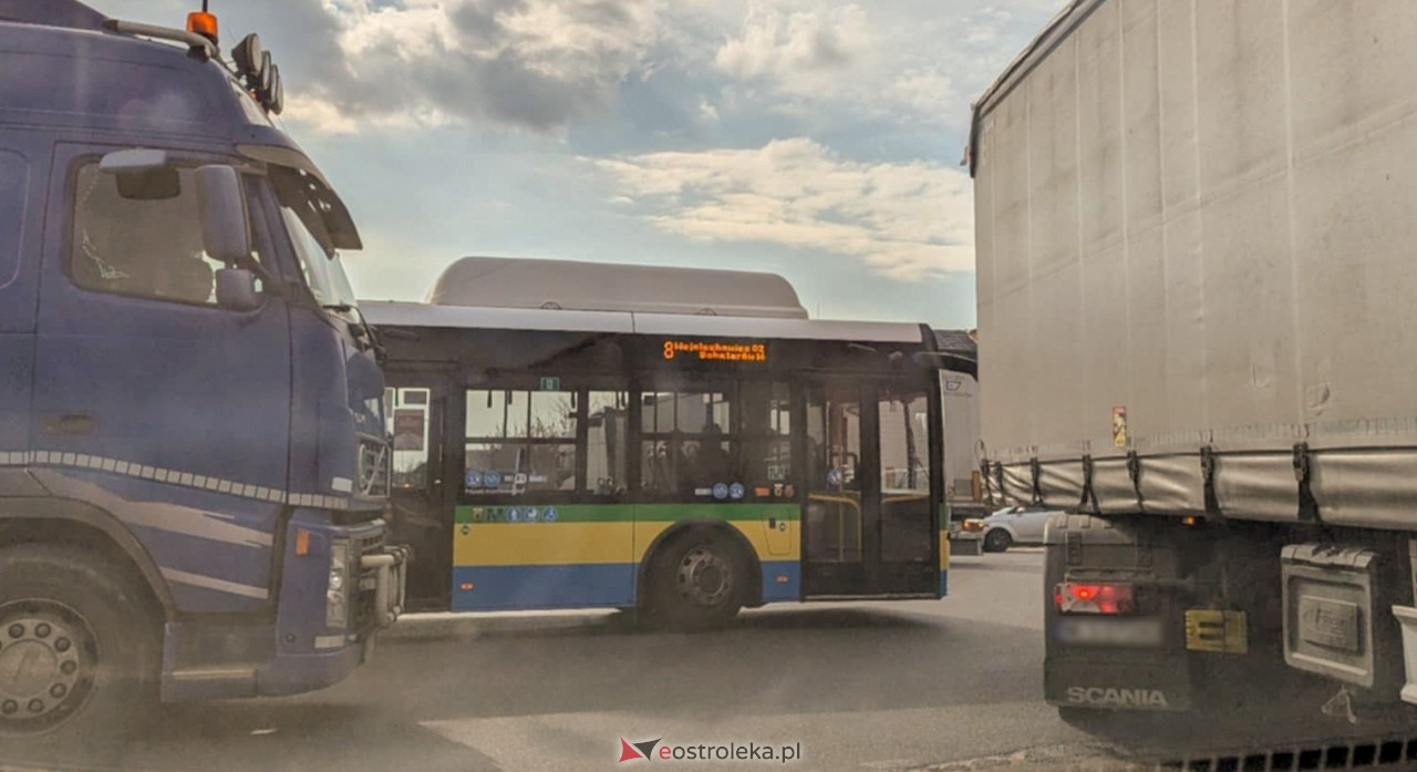 Na rondzie Kupiszewskiego w Ostrołęce ciężarowe Volvo zderzyło się z osobowym Mercedesem. Wielkich szkód nie było, ale kierowcy na kilkanaście minut zablokowali rondo, przez co utworzyły się spore korki. Zniecierpliwieni kierowcy używali klaksonów, jak również wysiadali, by zapytać, co się stało. Na środku ronda utknął także autobus.